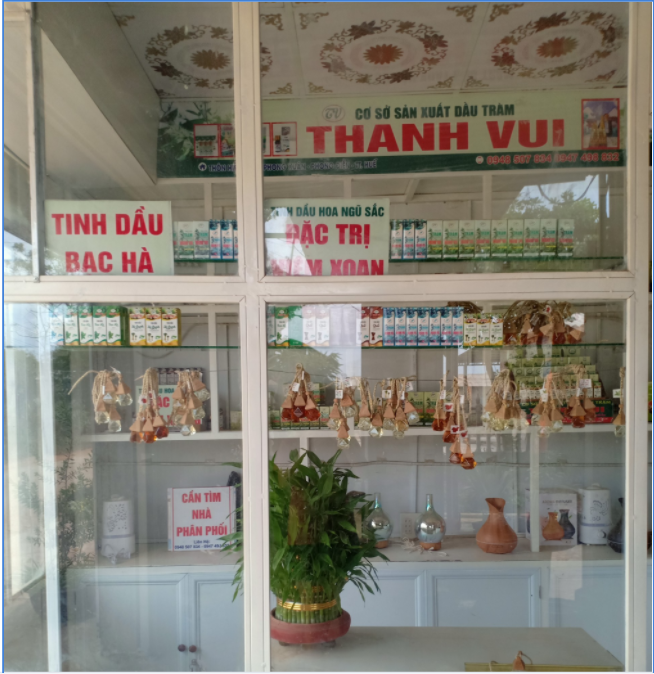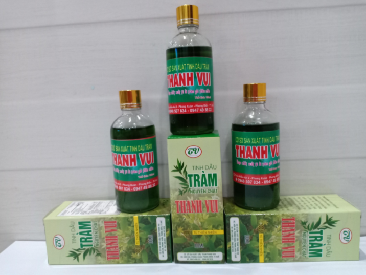 Nghề nấu dầu tràm  của cơ sở : DẦU TRÀM THANH VUI được hình thành cách đây hơn 45 năm và hiện nay lò dầu tràm, được đàu tư them 1 cái lò mới hiện đại hơn trước rất nhiều, nhưng công thức vẫn không thay đổi dù năm tháng có trôi qua. Muốn có một chai dầu tràm nguyên chất, người làm phải trải qua nhiều công đoạn như lựa chọn, xử lí nguyên liệu, nấu và lọc dầu. Mỗi công đoạn đòi hỏi người làm phải có kinh nghiệm, đặc biệt là lựa chọn nguyên liệu, phải biết chọn những loại lá tràm già, không quá non, thì tinh dầu mới được đúng nguyên chất, đảm bảo được chất lượng khi sản xuất ra. Lò nấu dầu trà tự làm, đơn sơ nhưng vẫn đảm bảo. Dầu tràm phải được nấu với nhiệt độ khoảng 1000 độ C mới tạo được lượng hơi nước lớn, khi hơi nước được hình thành sẽ truyền theo ống dẫn để thoát thành nước và tinh dầu, rồi sau đó người làm sẽ lọc dầu tràm đang lẫn vào nước.